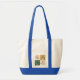 Love the durable cream colored canvas and navy blue contrasted handles. Perfect for carrying my laptop and papers.