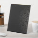 Showcase your message with sophistication using this plastic pedestal sign (8" x 10"). Featuring a sturdy build and an intricate ornamental pattern, this sign blends durability with elegance. Its upright pedestal format ensures visibility, making it ideal for event signage, retail promotions, or decorative displays at home or office. The dark embossed design adds a touch of refinement, while the lightweight plastic construction makes it easy to move and position.