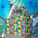 A pattern of toy bricks in a rainbow of colors - red, orange, yellow, blue, green, red and gray. These are fun to use for favors at a birthday party with a plastic brick or block theme.