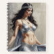 Una acuarela que captura la esencia de la danza del vientre. La bailarina resplandece con un traje plateado que refleja su gracia y movimiento.