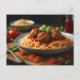 Plate of spaghetti and meatballs postcard