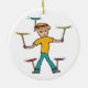 Circus plate spinning performer spins different color plates balanced on bamboo canes. For busy people who spend their time multitasking and endlessly spinning plates.