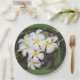 High definition photography of beautiful white flowers with yellow centers printed on plates. They are Plumeria found in Hawaii. Visit Zazzle shop Carolina Photo to Go for other products and photography.
