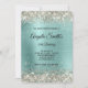 Platinum Glitter Turquoise Foil Fancy Monogram Invitation