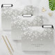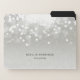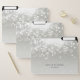 Chic file folder set in rich black and platinum gray features classic black lettering on a silvery grey background adorned with a burst of white bokeh lights at the top.