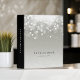 Chic binder for your salon, spa, makeup artist business or any occupation features classic black lettering on a silvery gray background adorned with a burst of white bokeh lights at the top. Personalize with two lines of custom text beneath, and add additional custom text in white to the solid black spine. Perfect for organizing your appointments or showcasing your portfolio. Please note: this binder is a mini size.