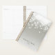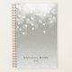 Chic planner with a gold spine features classic black lettering on a silvery gray background adorned with a burst of white bokeh lights at the top. Personalize with two lines of custom text, making this planner a perfect choice for businesses, appointments or daily tasks.