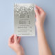 Elegant flyer design displays your services, price list or business information in classic black lettering on a silvery gray background adorned with a burst of white bokeh lights at the top. Includes four customizable headings and body text fields, and space for your business contact information along the bottom. To adjust layout, enter your text and then use the Customize function to change positioning and font sizes.