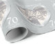 Wedding anniversary wrapping paper in platinum light grey tones. Personalize this anniversary paper with your own photo and anniversary year. Currently reads To my wonderful wife Happy Platinum Anniversary 70 memorable years. Beautiful liquid platinum effect in a heart shape printed graphics 70th Platinum Wedding Anniversary wrapping paper ideal to wrap up a special gift for your wife for your 70th Anniversary which is traditionally associated with platinum and a heart symbolizes love. Unique art and design for a special 70th wedding Anniversary by Sarah Trett.