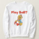 A cute dog plays with a ball and red text reads "Play Ball?" on dog T-shirts, bodysuits, mugs, cards, stickers, puppy dog tote bags, and much more.