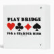 Showcase your wry bridge attitude with a dose of mental sharpness with this binder featuring the four card suits along with the following sound bridge advice: "Play Bridge For A Sharper Mind". No need to be a bridge teacher to enjoy.