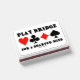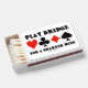 Showcase your wry bridge attitude with a dose of mental sharpness with this matchbox featuring the four card suits along with the following sound bridge advice: "Play Bridge For A Sharper Mind".