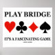 Showcase your wry bridge attitude with this poster featuring the four card suits along with the following sound bridge advice: "Play Bridge It's A Fascinating Game". Inspirational poster with sound bridge advice for any avid bridge player or duplicate bridge club!