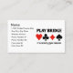 Showcase your wry bridge / duplicate bridge sense of humor with this customizable business card featuring the four card suits along with the saying "Play Bridge It's Cheaper Than Therapy". Make others do a double-take the next time you play bridge with this memorable bridge saying business card! No need to be an avid bridge player to enjoy introducing yourself with this bridge attitude business card!