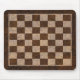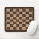 Take a break and play Chess on this mousepad. This design features the effect of a rich dark wood veneer with an inlaid eight by eight square checkered board of alternating decorated brown and cream tiles representing the dark and light squares of a chessboard, draughts board or checkers board.