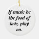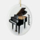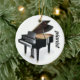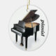 A baby grand piano is pictured with the word "pianist" down the side. The other side of this ornament says: If music be the food of love, play on printed in black.