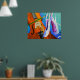 An 11x14 poster of "Play Paint Pointe" by artist, J. Travis Duncan. This is a winning piece by J. Travis Duncan that represents the arts and how they are imperative for each other. The green artist's brush is playing the cello while painting the ballet pointe shoes. The lace of one of the pointe shoes is becoming one of the cello's sound holes (F-holes). This painting was done with a palette knife. NOTE: The artwork, "Play Paint Pointe", is protected by copyright for artist J. Travis Duncan (www.jtravisduncan.com). Copies and/or duplication are prohibited. Any questions about use can be forwarded to panoplei.