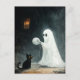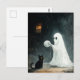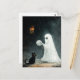 A fun Halloween scene with a ghost who wants to play with a cat with a yarn ball
