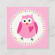 Playdate mommy calling cards/playdate invitations featuring a cute little pink owl inside a colorful dot border on the front. The owl has a pink heart on its chest. Text on the back "Lets play" in colorful letters. Customizable text below "Have your mom call my mom and we'll set a time and day" and template fields for the child' name, mom's name and phone number. This is the perfect way for your kids to invite a new friend to play.