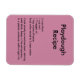 A handy reference to stick on your refrigerator on how to make playdough. This magnet would be useful for a busy Mom or Dad or for a preschool or kindergarten teacher. Color and font are customizable to suit your own style.