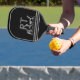 A stylish and modern black and white design on a cool pickleball-paddle... to personalize with your own name and initials.