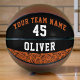 Player Name Number Team Basket Ball Pattern Basketball. The design has a black and orange basketball pattern. Personalize it with your team name, player`s number and player`s name. This custom and personalized basketball is a perfect gift for basketball players, teammates, coaches, your friends and family.