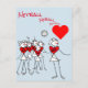Netball player positions cartoon stick figures clipart and heart design postcard featuring goal defence. Love Netball GD card design for players and fans.