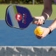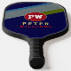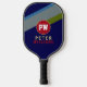 Player's Name on Striped Blue Pickleball Paddle
