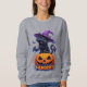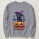 Playful Black Cat in Witch Hat Sweatshirt