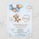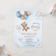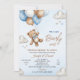 Playful Blue Brown Bear Cloudy Sky Baby Shower Invitation