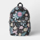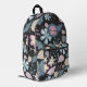 Introducing our unique customizable floral printed backpack! The graphic style is a delightful blend of modern whimsy and classic elegance. Against a deep charcoal background, stylized flowers bloom in shades of pink, blue, teal, and cream. Leaves exhibit intricate patterns—some with polka dots, others with fine line work. These add texture and depth to the overall design. Remember, this backpack is more than accessory—it’s an expression of your unique style!