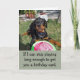 This funny birthday card says, "If I can stop playing long enough to get you a birthday card, you darn well better take the time to have a BLAST on your birthday! Happy Birthday!" This card shows my young Rottweiler puppy named Heidi. With a blade of grass stuck in her lips and a Frisbee between her paws, Heidi is lying on the grass looking annoyed that her play time was interrupted for this picture to be taken. A hilarious card for every dog lover on their birthday.