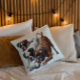Fabric is very nice and of good quality. I like that there are many colors to choose from and you can have a different color on the back side if you choose.The pillow was to be 16" x 16" but ran a bit small. (14.5") Still happy just recommend you get a larger size . Design came out great. Colors were vivid and the overall quality is quite nice. Will definately order again. Highly recommend because it not only shipped super fast but overall I love the results!