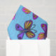 Purple and pink modern design featuring playful butterflies on a blue background.