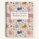Inspire your young artist with our personalized playful cat-themed sketchbook for kids! This “Meow-tastic Adventures” drawing notebook features a whimsical pattern of pink, gray, and brown playful cats alongside doodles of paw prints, fish bones, flowers, dots, and hearts on both the front and back covers.