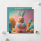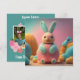 A soft, playful, cuddly knitted bunny in pastel colors with tiny yarn eggs, perfect for Easter greeting cards and spring holiday decor. The design is charming and plush, with a handmade feel and bright, warm, friendly appeal.