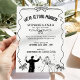 Celebrate your wedding with a playful black and white invitation featuring a whimsical ribbon frame, hand drawn doodle accents, and a sweet illustrated couple at the bottom. This design is fully customizable and available with different couple illustrations to reflect your style, so you can choose the look that feels most like you. Personalize the wording, fonts, and colors to match your day, and reach out anytime if you’d like coordinating pieces for a complete wedding suite.