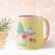The pups glide gracefully in front of beautifully adorned Christmas trees, set against a warm pastel yellow background that radiates festive cheer. With its two-tone design and customizable option to add your name or a personal message, this mug is the perfect blend of practicality and seasonal delight.
