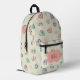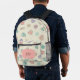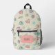 This adorable personalized backpack features doodles of simple hearts, dots, and wavy lines painted with soft pastel watercolors in blush pink, mint green, lavender, and pale yellow.