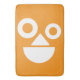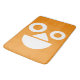 face built up by a half circle, 2 different size circles with hole in the middle for eyes and a triangle for the nose. Available in several colors. Fun for kids bathroom.