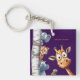 Playful Forest Creatures Purple Square Design Keychain