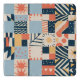 Playful geometric pattern with assorted shapes and colors, including stars, stripes, and dots.
