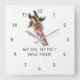 Funny Clocks with Happy Giraffe Tongue Out and Playful Wink Cartoon Drawing Smile Text Clock - Customizable - or Choose / Add Your Unique Text / Font / Color - Make Your Special Wall Clocks Gift - Resize and move or remove and add elements / image with Customization tool ! Choose fonts / size / color ! Drawing and Design by MIGNED. You can also transfer my designs to more than 1000 Zazzle products. Smile - Be Happy :)