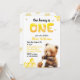 Playful Golden Bee-Themed Bear One Year Birthday Invitation