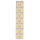 Bring tropical vibes to your dining space with this vibrant table runner featuring a playful Hawaiian design. Hula dancers, pink, yellow, and red hibiscus flowers, and green tropical leaves are paired with pink and peach aloha and hula text for a festive look. Perfect for Hawaiian culture enthusiasts hosting a luau or adding a cheerful touch to everyday meals.