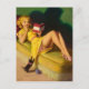 Funny PinUp card showing a cute Pin-Up Girl got catched her skirp by a cute kitten, painted by Art Frahm (1907-1981)