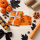 Bright orange bursts with mischievous charm as expressive jack-o'-lanterns grin across the surface. Inspired by vintage Halloween cartoons, this design blends nostalgia with festive energy. Perfect for party favors, seasonal packaging, or spooky surprises.