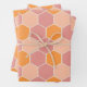 Playful Orange & Pink Sunny Honey Bee Hexagon Wrapping Paper Sheets