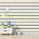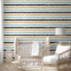 This peel and stick wallpaper is a celebration of modern design, where artistry and practicality converge. It showcases an abstract horizontal stripe pattern that mimics the free-flowing nature of paint strokes. The stripes, with their jagged edges, alternate in thickness and dance in a vibrant palette of soft blue, sunny yellow, crisp white, and bold black.