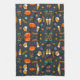 Playful pattern of orange pumpkins kitchen towel